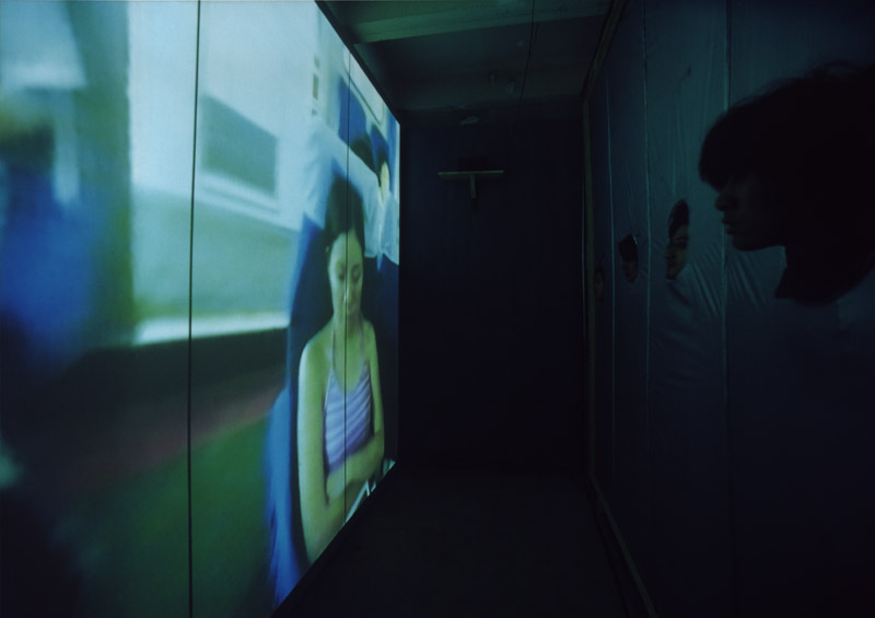 Installation: rear-screen projection that has to be viewed from holes those are very close to the screen.