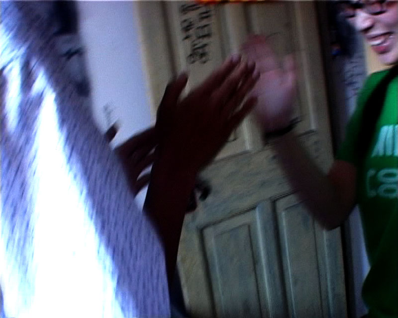 Video Image: Shots of different public and private spaces, such as the street, crowds, bodies etc. Every scene begins and ends in black fadeouts, comprising a series. During every black fadeout, the sound of a person trying to catch his breath out of water can be heard. As if he could get the breath in the dark.