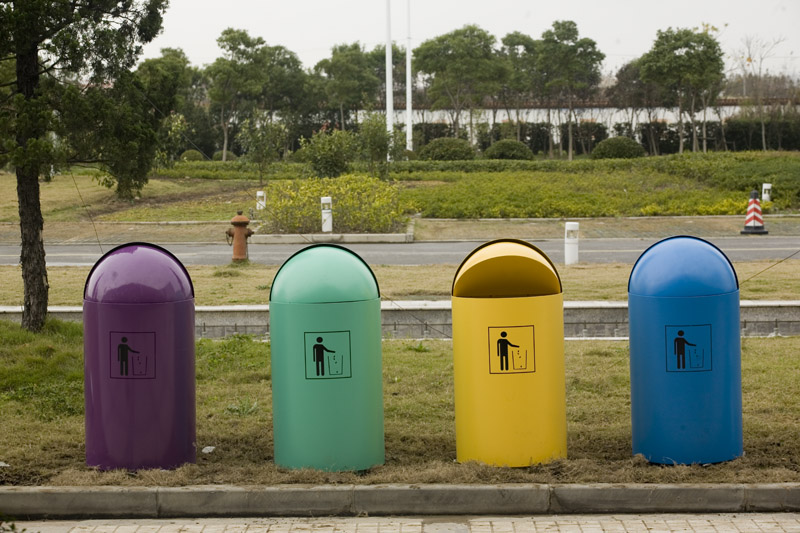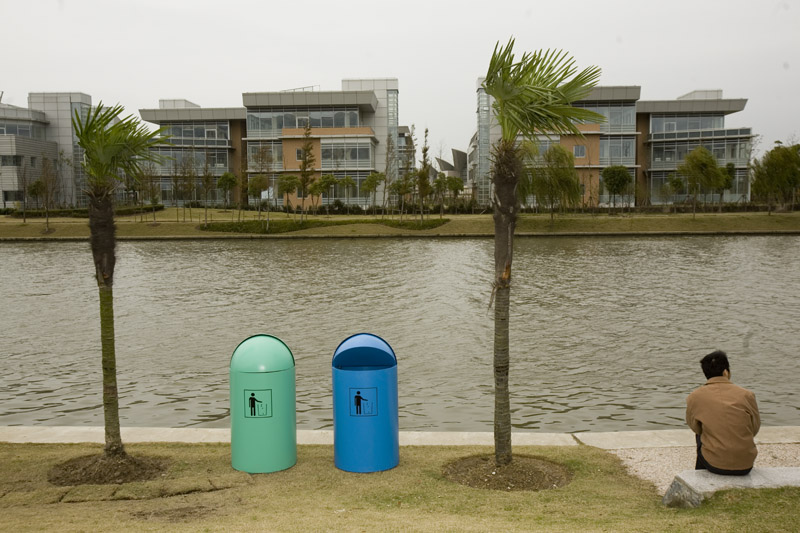 The trashcans specially made and placed on intersections of different densities as a way of entering into the daily life of the high-tech park in a humane way.