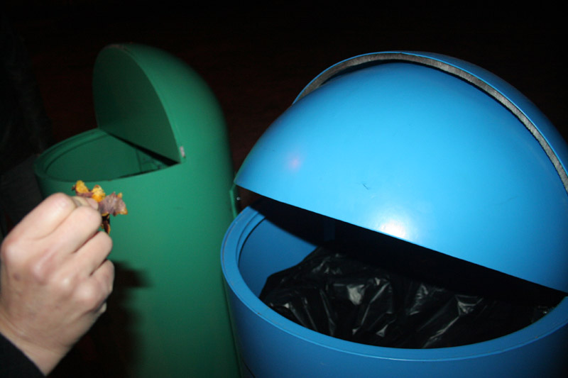 These trashcans are normally “asleep”, and make some snoring sounds, with their lids closed. When someone wants to throw out a piece of trash, they must hit the trashcan, waking it up, whereupon it opens its mouth and stops yawning. Pedestrians can throw their trash inside. After several minutes, the trashcan closes again, continuing to sleep and yawn.