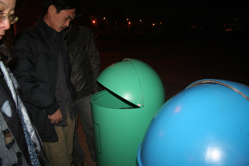 特制一些垃圾筒分散安装在张江各区不同人口密度的马路旁,以人性化的方式介入日常的科技园区生活。这种垃圾筒平时都在“睡觉”,并且持续发出打呼噜的声音,扔垃圾的开口是关上的。当行人想扔垃圾时,必须拍打它,把它叫醒,开口才自动张开并停止打呼。行人就可以往里扔垃圾。几分钟后,垃圾筒再次关闭,继续睡觉、打呼噜。