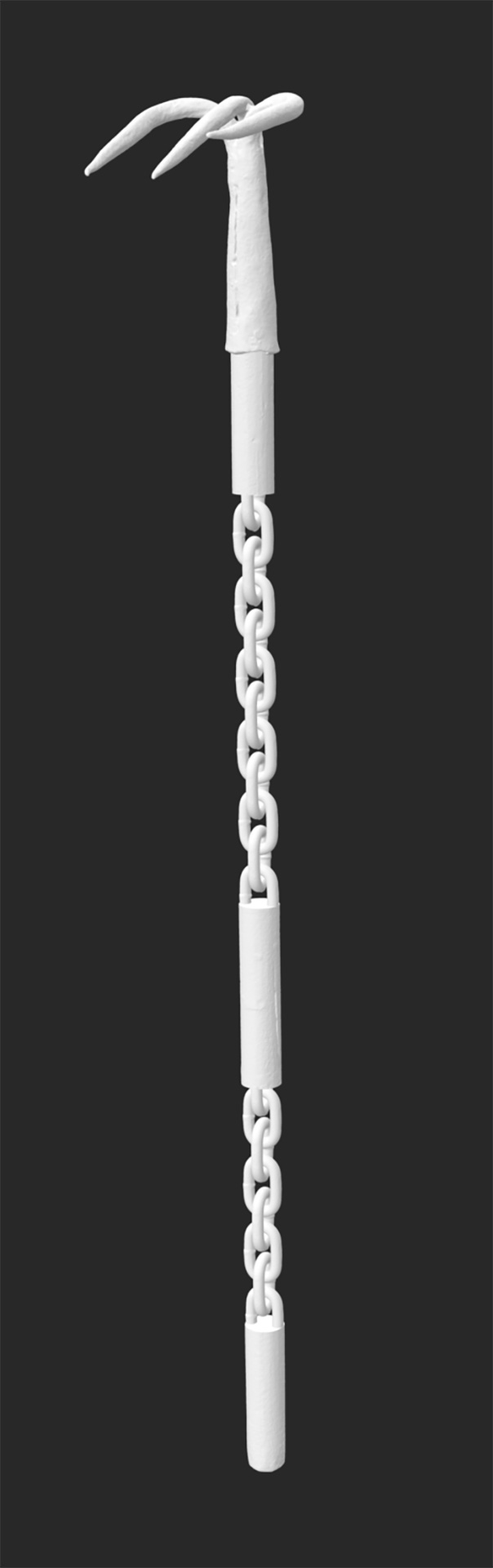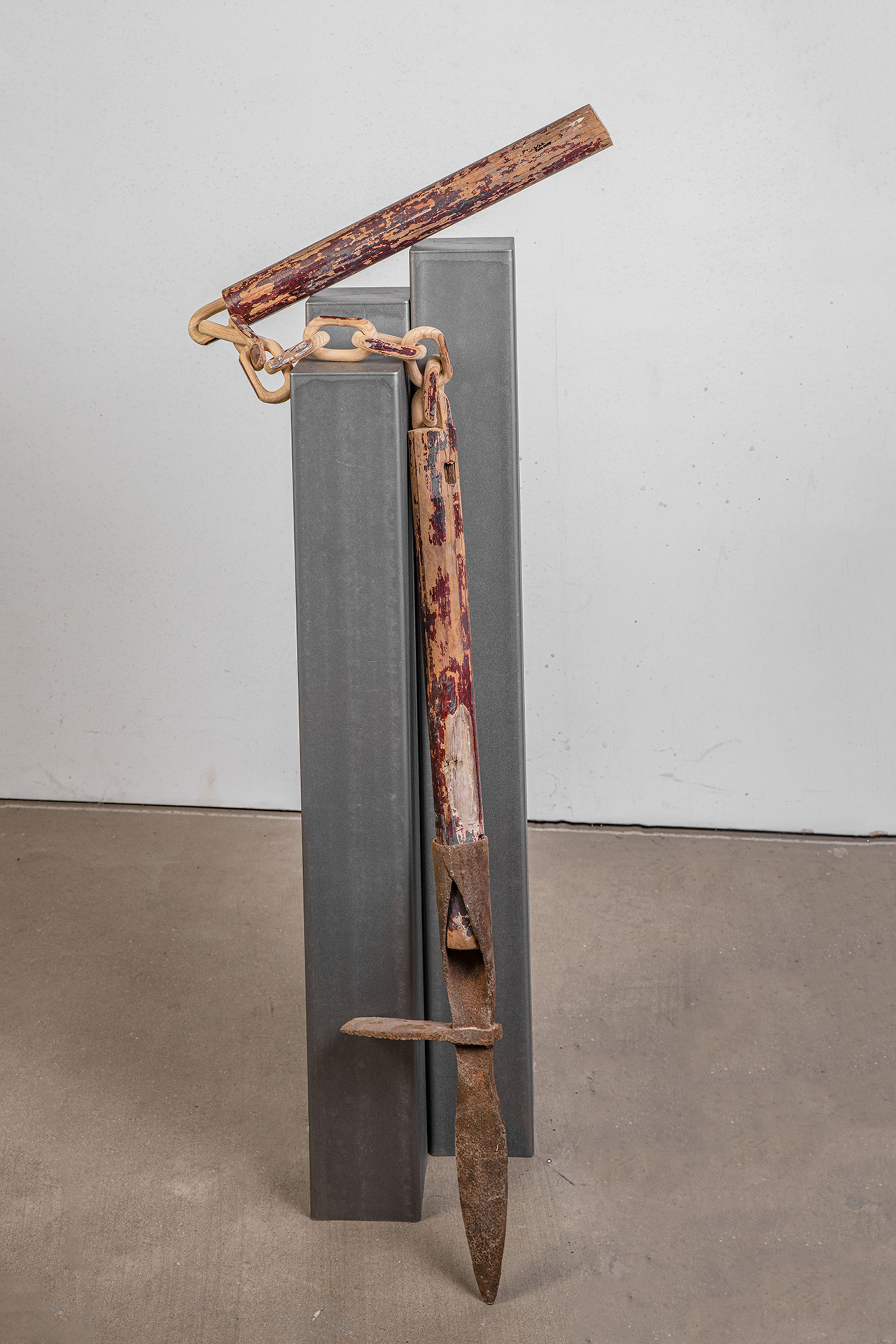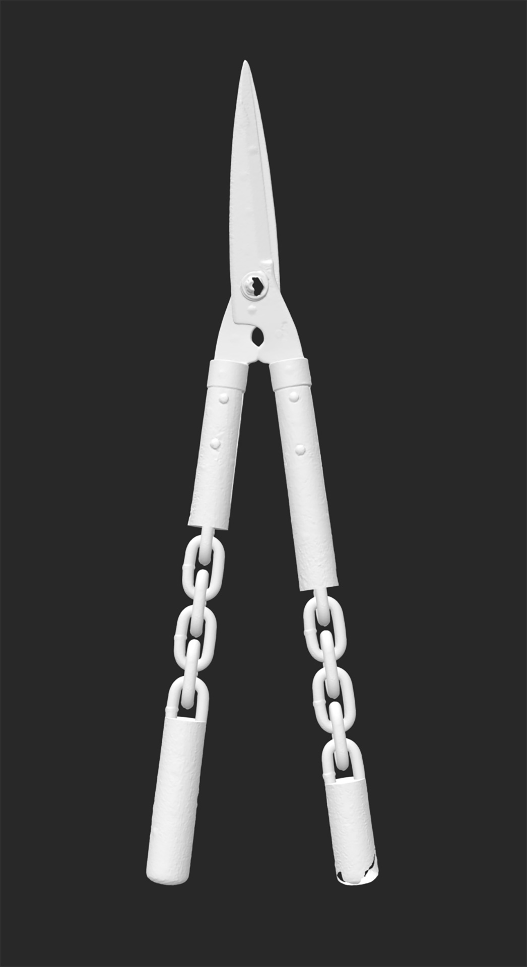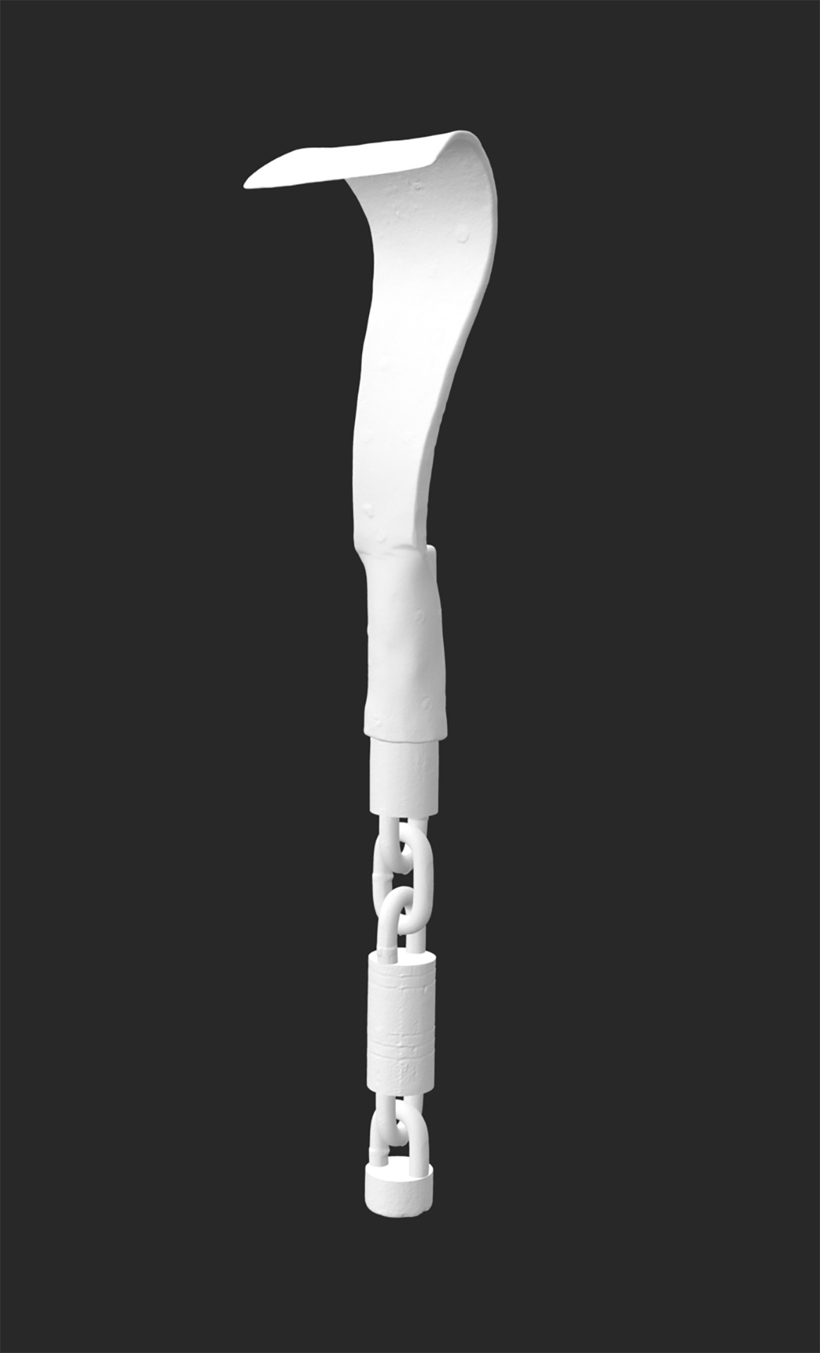 艺术家收集各种被使用过的手工工具,首先3D扫描每一件工具,并用3D软件把木质部分套入链条的形状。通过3D雕刻定位,最后在浙江东阳木雕工作坊,用传统的镂空雕工艺雕刻成形。The artist collects various used hand tools, first conducting 3D scanning of each implement. Using 3D software, the wooden components are modeled into chain-like forms. Through precise 3D engraving positioning, the final pieces are carved using traditional hollow-carving techniques at the Dongyang Woodcarving Workshop in Zhejiang Province.